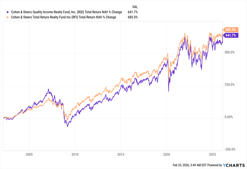 كلا الصندوقين يعودان إلى حوالي 24 عامًا، وخلال تلك الفترة، حققا معدل عائد إجمالي على صافي قيمة الأصول (NAV) بنسبة 8.8% في المتوسط سنويًا. هذا أعلى من توزيعات الأرباح الحالية لكل منهما (مما يعني أن تلك التوزيعات مستدامة) وقريب جدًا من بعضهما البعض بحيث لا يمكن اعتبار أحدهما “أفضل” بمفرده.