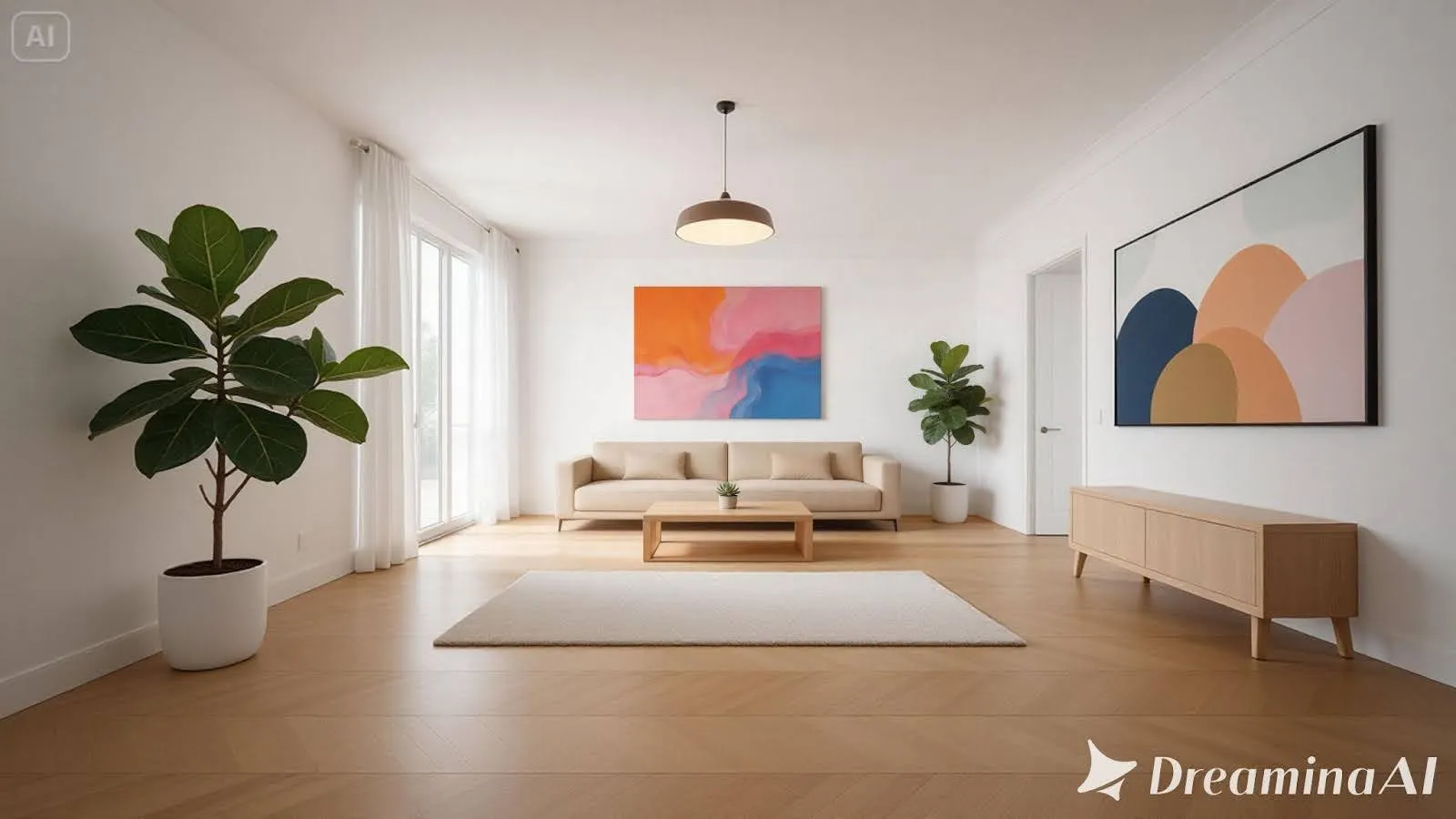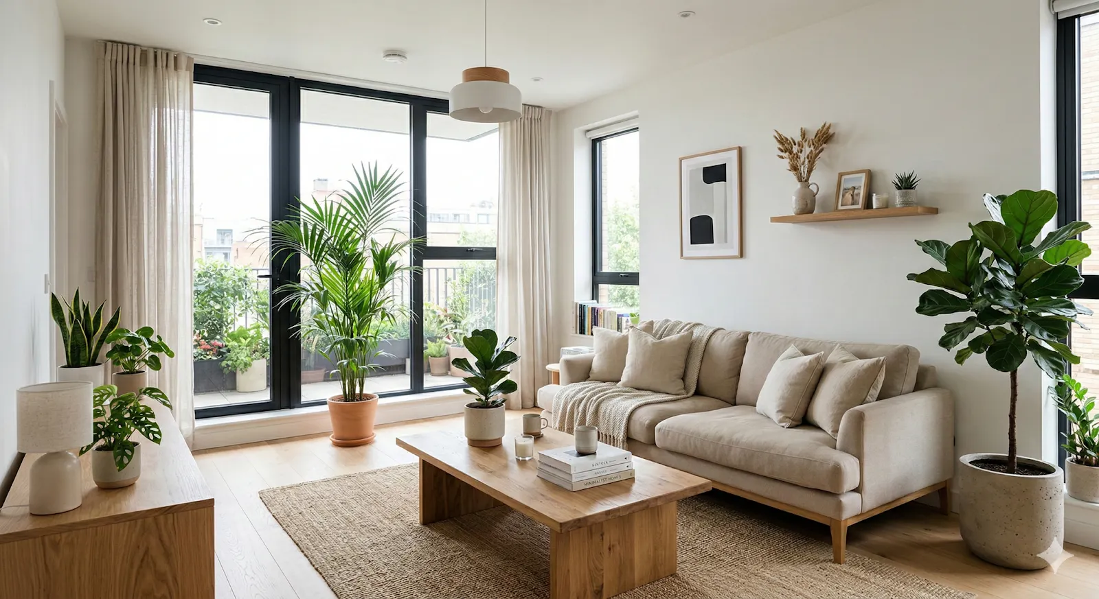 Das Briefing spezifizierte weiße Wände, ein beiges Sofa, einen Holztisch und Zimmerpflanzen—ein klar umrissenes Projekt mit eindeutigen architektonischen Vorgaben.