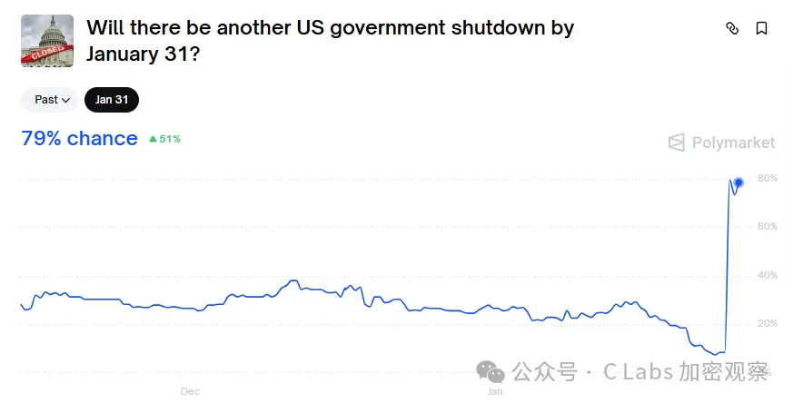 La probabilidad de cierre del gobierno de EE. UU. se ha disparado del 9% al 79%, lo que ha provocado una caída en el mercado de criptomonedas. La causa fue una controversia legal derivada de un caso de estafa de inmigrantes somalíes, que llevó a un estancamiento en la financiación del Departamento de Seguridad Nacional, poniendo a ambos partidos en un impasse. Sin embargo, el mercado de criptomonedas se convirtió en el comprador de esta tormenta política. Este artículo se basa en un texto de Demir, organizado, traducido y redactado por PANews.