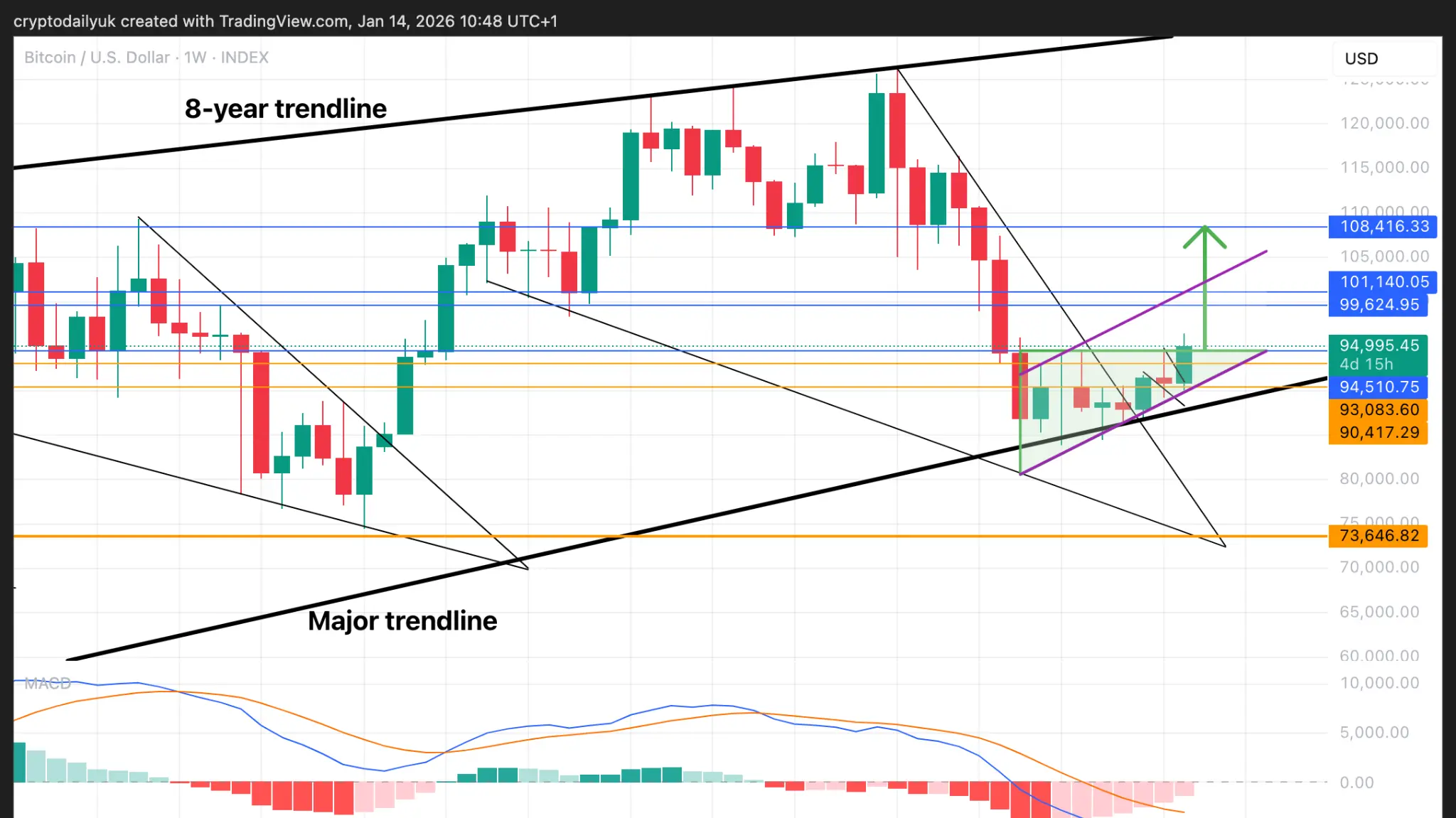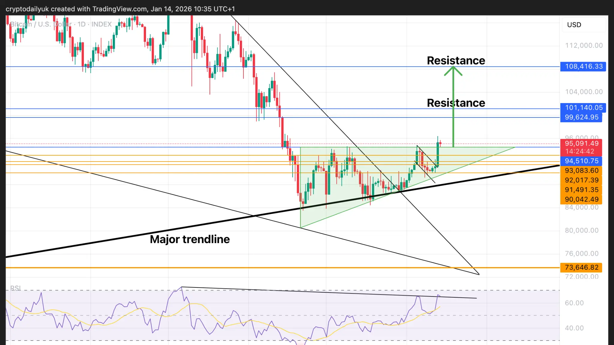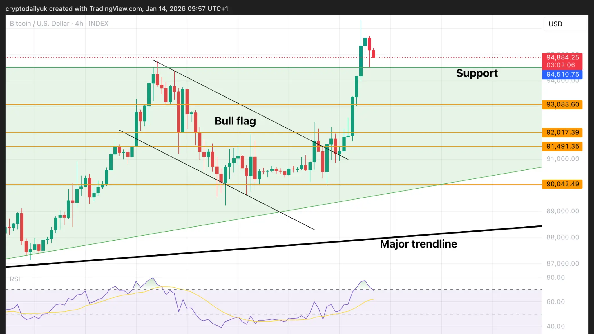 Bitcoin rompe la resistencia clave: ¿el próximo objetivo $100K? – Análisis técnico de BTC 14 de enero de 2026