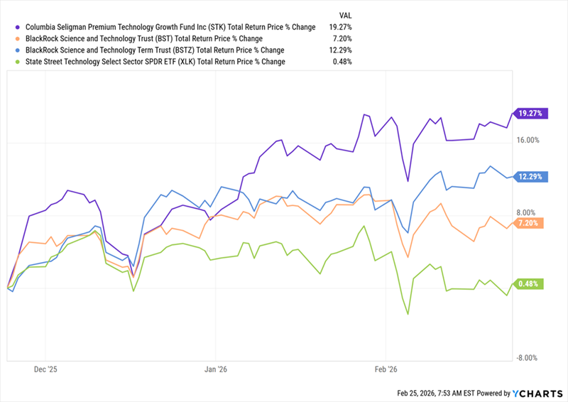 Eso fue lo primero que pensé cuando revisé los tres CEFs enfocados en tecnología en nuestro portafolio CEF Insider: el BlackRock Science and Technology Term Trust (BSTZ), BlackRock Science and Technology Trust (BST) y Columbia Seligman Premium Technology Growth Fund (STK).