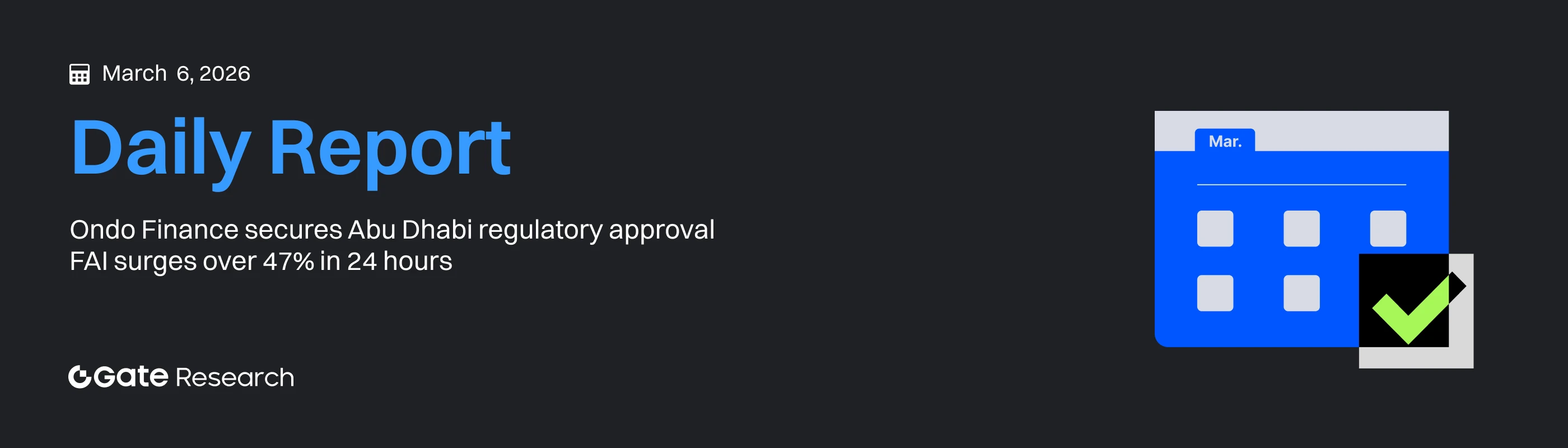Découvrez plus de détails aujourd’hui → Gate Research : Ondo Finance obtient l’approbation réglementaire à Abou Dhabi | FAI bondit de plus de 47 % en 24 heures