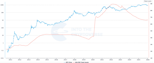 暗号市場は、流動性の量だけでなく、その流動性がリスクを取る意欲があるかどうかにも依存している。連邦準備制度のバランスシートは再び拡大し始めているが、コーエンはその拡大は主に準備金管理と金融システム支援に結びついていると示唆している。そのため、通常投機的リスクテイクを促すような刺激策には欠けている。