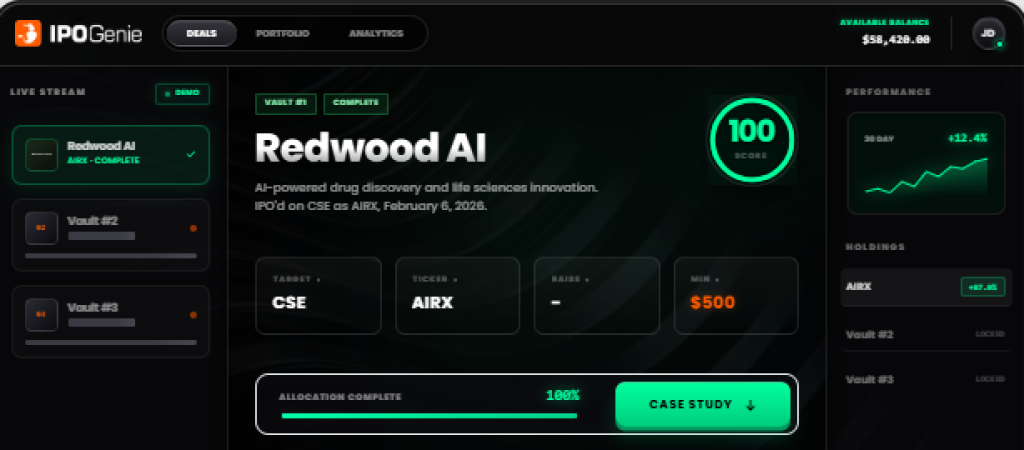 IPO GenieのAIはRedwood AI Corp.を高潜在性のプレIPOターゲットとしてフラグ付けしました。その予測はタイムスタンプ付きで公開されました。2026年2月6日、Redwood AIはカナダ証券取引所に上場し、ティッカーはAIRX。予測は的中。早期の$IPO保有者は、一般公開前にシグナルを受け取っていました。