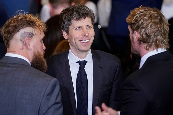 トランプ大統領の就任式には、アルトマン(中央)、ボクシングスターのジェイク・ポール(左)、そしてレスリング選手のローガン・ポールが出席しました。