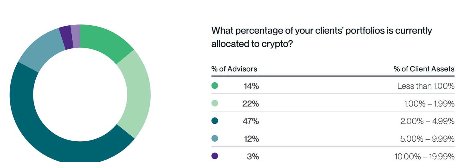 それにもかかわらず、暗号資産のエクスポージャーを管理するアドバイザーの約5人に1人は、リスク調整後のリターンが従来のガイドラインを超える価値があると判断しています。
