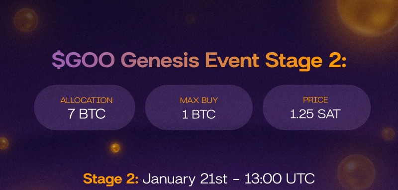 GooMoneyのフェアローンチのステージ2は1月21日に開始され、$GOOとネイティブトークンのステーク版である**$sGOO**が提供されます。