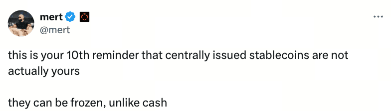 Helius創設者のMert Mumtazは、「これはあなたへの10回目の警告だ——中央集権的に発行されたステーブルコインは本当にあなたのものではない;凍結される可能性がある。現金と違うのだ」と強調する。この見解は、事件を中央集権型ステーブルコインの根本的性質の再確認と位置付け、ユーザーはUSDCなどの資産を使用する際に、相手方リスクを理解すべきだと主張している。