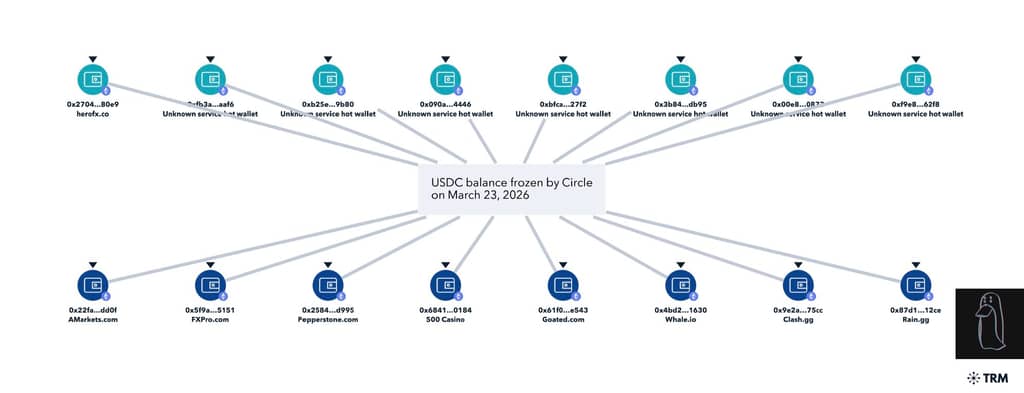 ZachXBTの公開声明によると、Circleは進行中の米国民事訴訟に関連して、16のUSDCウォレットを凍結した。これらのウォレットは個人アカウントや疑わしい違法資金のルートではなく、運営中の暗号取引所、オンラインカジノ、外為交換プラットフォームに属している。ZachXBTは強調する、「これらのウォレットは全く関係がないように見える」とともに、「基本的な分析ツールを持つ調査員なら、数千の取引を処理している中から、これらが運営用の商用ウォレットであると数分で識別できる」と述べている。