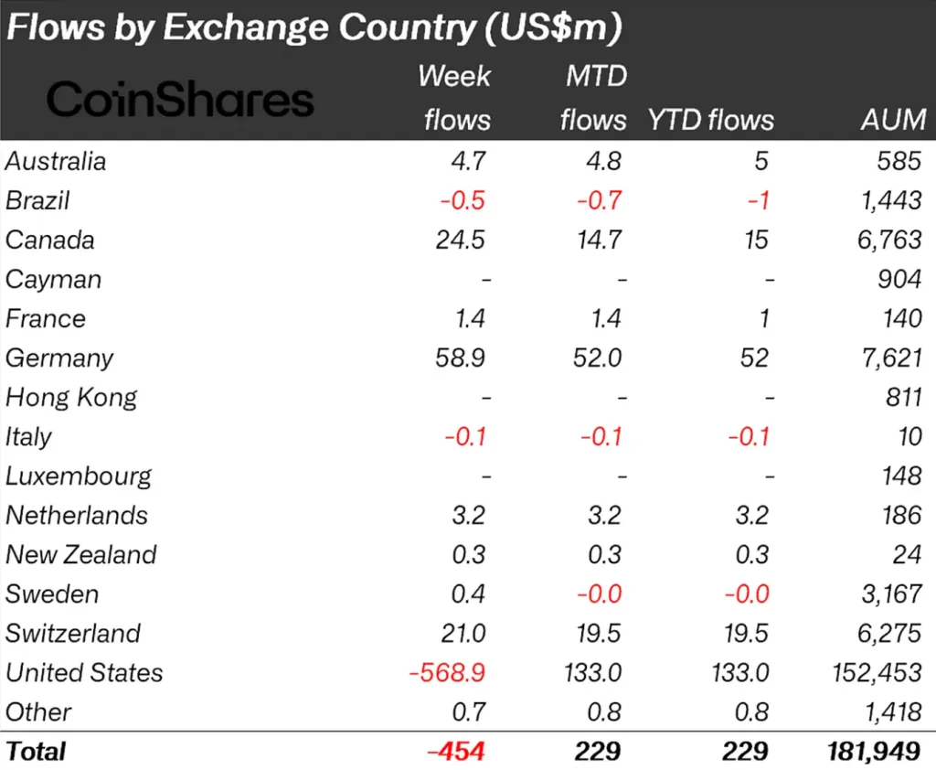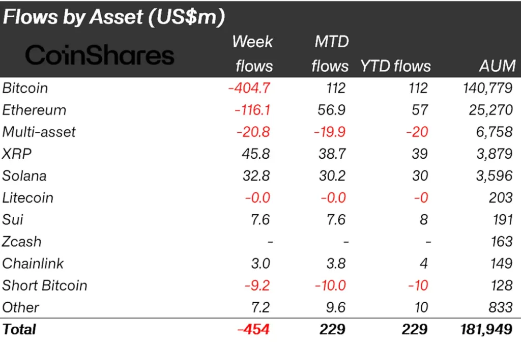 12月2日から10日までの間に、暗号資産投資商品は$454 百万ドルの資金流出を記録しました。これはCoinSharesのレポートで述べられています。
