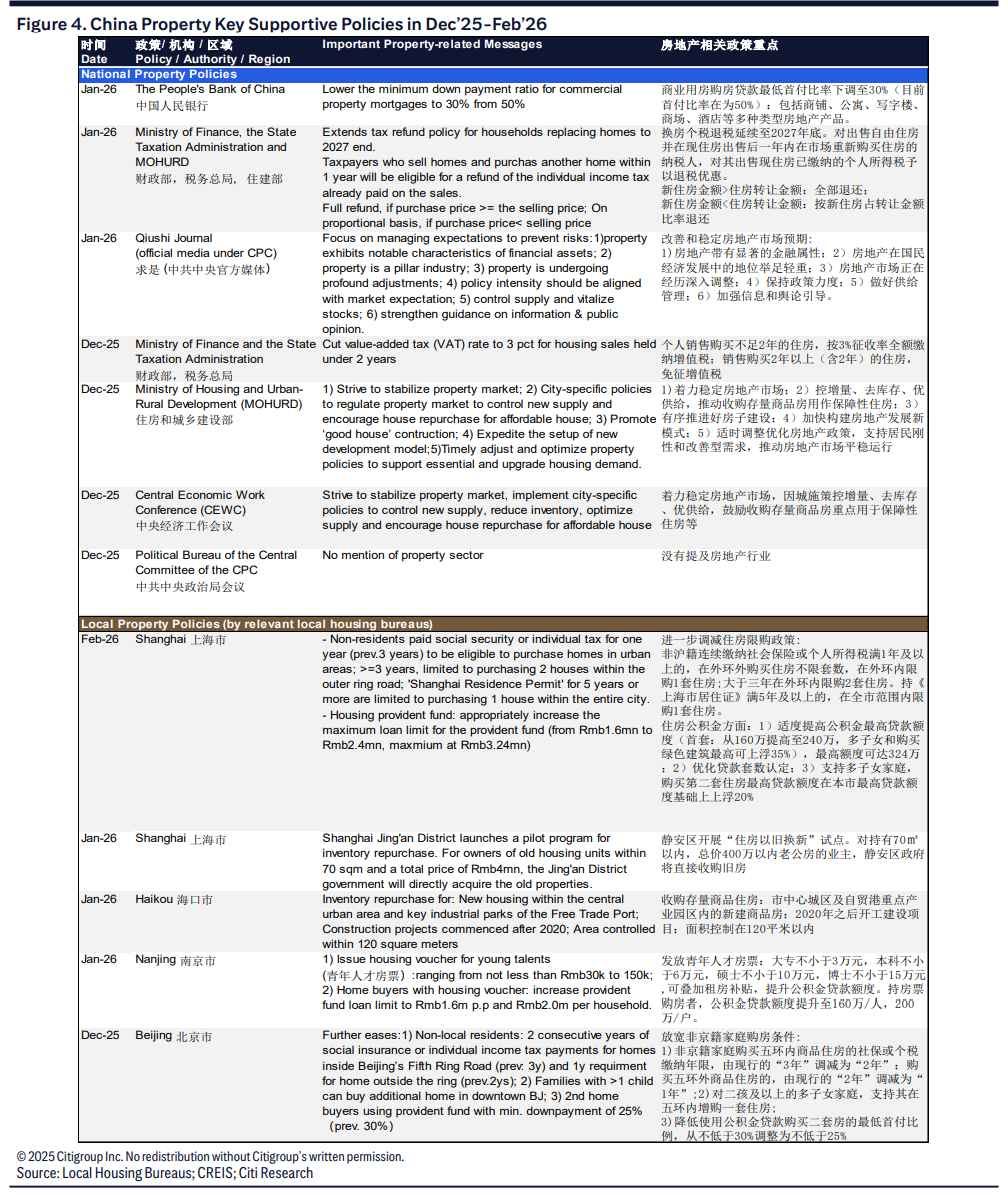 By the end of 2025 and the beginning of 2026, policies on real estate in first-tier cities will enter a new round of concentrated release and optimization cycle. On February 25, Shanghai issued seven new measures to systematically optimize restrictions on purchases, housing provident funds, and related taxes and fees. Previously, in December 2025, Beijing also lowered requirements for non-local household registration, social security, and individual income tax periods for home purchases, and optimized down payment ratios and loan limits for provident fund mortgages. Shenzhen continued to relax restrictions on purchase eligibility and second-home loan policies. Guangzhou further eased purchase restrictions in peripheral areas and strengthened credit support.