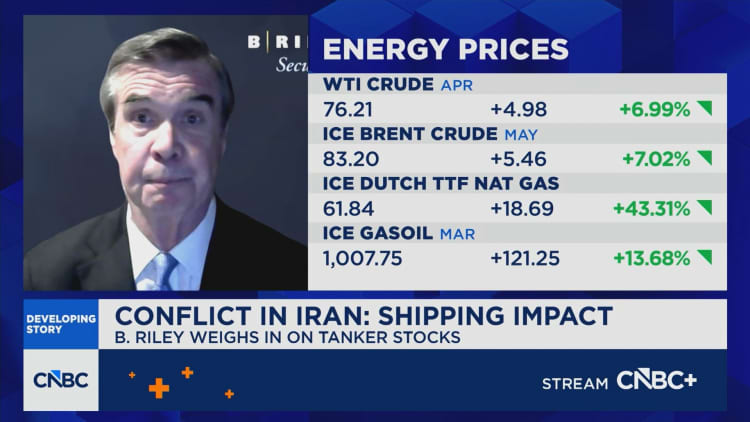 A prolonged closure of the strait would likely lead to a further surge in oil prices, with some analysts seeing oil crossing $100 per barrel. Global benchmark Brent was last up 2.6% at around $80 per barrel —almost 10% higher since the conflict broke out.
