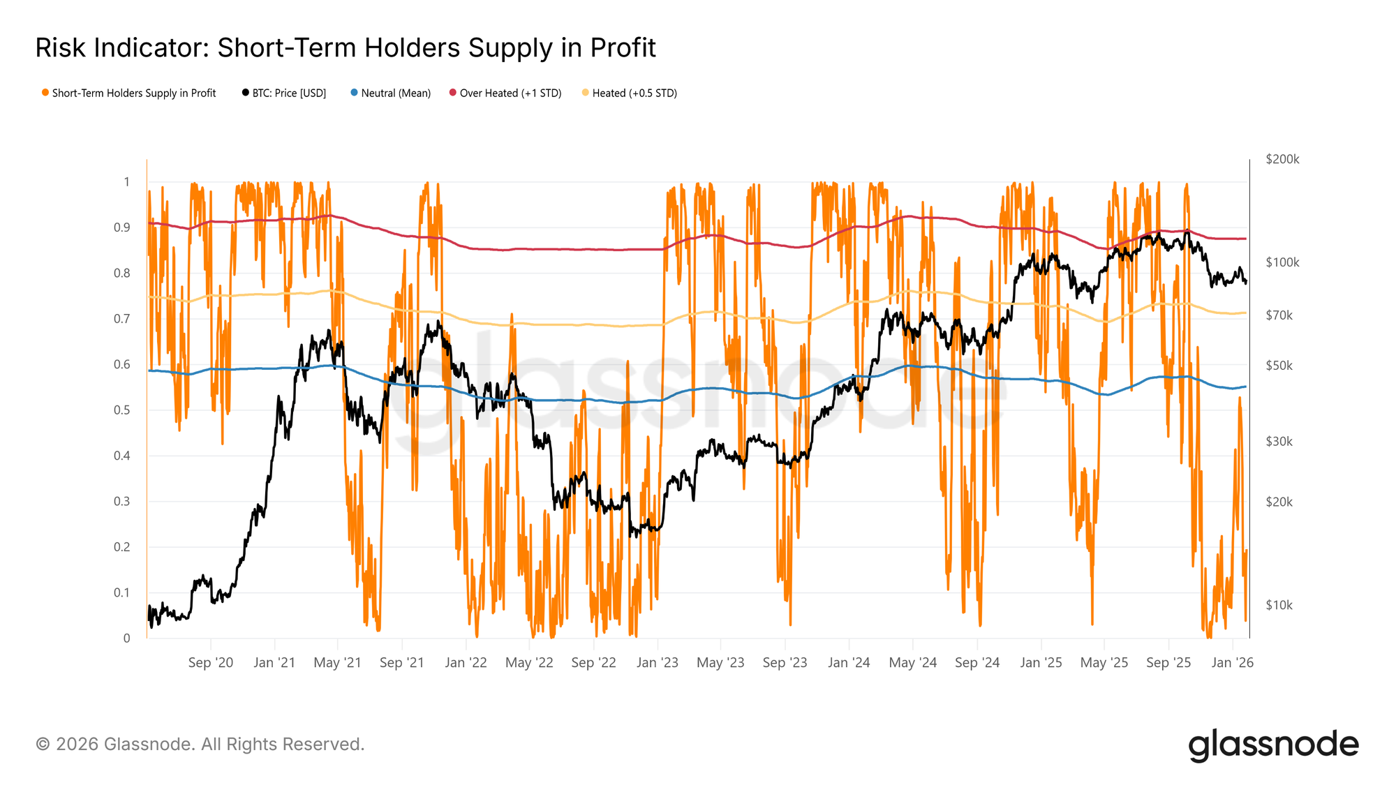 Atualmente, a proporção de detentores de curta duração na oferta que está em prejuízo caiu para 19,5%, o que ainda está bem abaixo do limiar neutro de 55%. Isto sugere que, embora a sensibilidade à baixa persista, ainda não se formou uma venda massiva de capitulação de detentores de curto prazo.