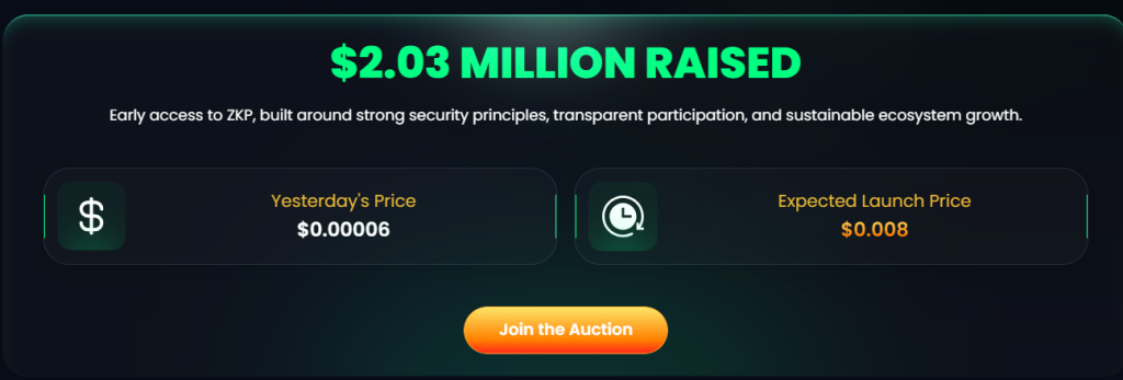 ZKP ($ZKP) está em torno de $0,00006, o que significa que uma entrada de $1.500 garante aproximadamente 25 milhões de tokens. Um cenário de 100× colocaria o token perto de $0,006, ilustrando como o preço inicial molda o potencial de valorização.