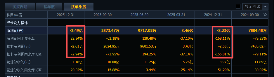 Em 2025, nos três primeiros trimestres, a Shede manteve lucros, mas no quarto trimestre apareceu uma perda líquida trimestral de 249 milhões de CNY; o lucro líquido excluindo itens não recorrentes foi ainda mais negativo, com uma perda de 261 milhões de CNY. O caso não é isolado: em 2024 ocorre algo semelhante, e no quarto trimestre volta a assistir-se a um “mergulho de plataforma alta”, com uma perda gigantesca de 323 milhões de CNY de lucro líquido no trimestre.