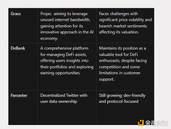 แล้วมีโปรเจกต์ที่ “ช้าแต่มั่นคง” เหล่านั้น: Grass, DeBank, Farcaster พวกเขามี “อัตลักษณ์” ของตนเอง - ผลตอบแทนจากการเก็งกำไร, อัตลักษณ์สังคม DeFi, การสนทนาแบบกระจายศูนย์ พวกเขาไม่โดดเด่นและก็ไม่ได้หายไป แต่ยังคงสร้างอย่างเงียบ ๆ และมีเจตนาอยู่นอกกระแสความนิยม.