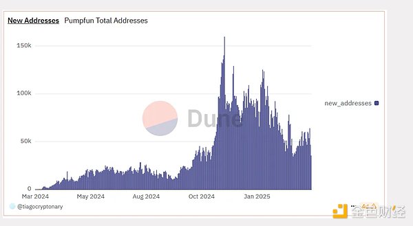 Pump.fun เป็นภูเขาไฟ ในตอนท้ายของปี 2024 มันสร้างเหรียญมีมหลายล้านเหรียญโดยมีกระเป๋าเงินใหม่มากกว่า 150,000 ใบปรากฏขึ้นทุกวันที่จุดสูงสุด ตั้งแต่นั้นมาเส้นโค้งก็ลดลงอย่างมาก แต่ไม่ได้ตาย แต่ทรงตัวที่ 50,000 ถึง 60,000 เหรียญกษาปณ์ต่อวัน ยังคงมีประโยชน์ยังคงน่าสนใจ มันไม่ใช่ความรุ่งเรืองทางวัฒนธรรมแบบที่ครั้งหนึ่งเคยกลายเป็นช่วงสั้น ๆ