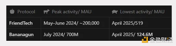 เช่น FriendTech ที่มีการเติบโตอย่างรวดเร็วและน่าตื่นเต้น แต่การล่มสลายของมันกลับสิ้นหวังโดยสิ้นเชิง - ไม่มีแผนงาน ไม่มีความยึดติดจากผู้ใช้ และไม่มีเส้นทางการฟื้นตัวใดๆ เมื่อความนิยมหมดไป ก็กลายเป็นภาระทันที.