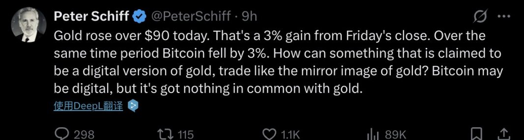 ยักษ์ใหญ่ด้านเทคโนโลยีของ Silicon Valley และ “เงินเก่า” ของ Wall Street ถูกแบ่งออกในเกมนี้ Larry Fink ซีอีโอของ BlackRock ได้รับรองแผนสํารอง crypto ของทรัมป์ต่อสาธารณชนโดยกล่าวว่า “Bitcoin เป็นทองคําดิจิทัลเพื่อต่อต้านการขาดดุลการคลัง” Peter Schiff นักเศรษฐศาสตร์ที่มีชื่อเสียงและกระทิงทองคํายืนยันว่า “ทั้งฟิวเจอร์สดัชนีหุ้นสหรัฐและดอลลาร์ได้ขายออกไป แต่ทองคําและบิตคอยน์กลับเคลื่อนไหวสวนทางกันอีกครั้ง ทองคํามีพฤติกรรมเหมือนสินทรัพย์ปลอดภัยเพิ่มขึ้นประมาณ 1% ในทางกลับกัน Bitcoin ซื้อขายเหมือนสินทรัพย์ที่มีความเสี่ยงลดลงประมาณ 2% เห็นได้ชัดว่า Bitcoin ไม่ใช่ทองคําดิจิทัล”