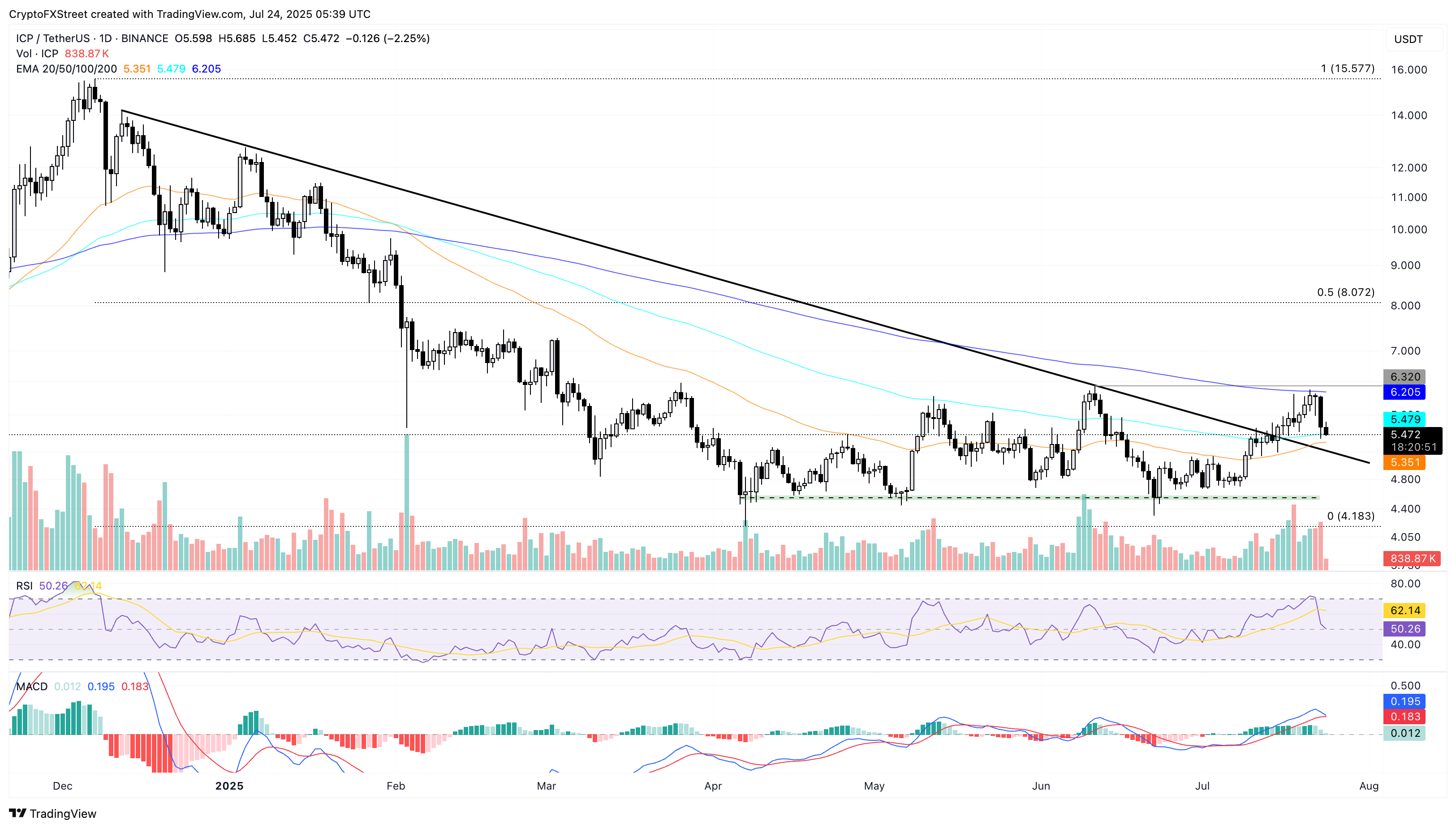 截至週四發稿時,ICP ราคาลดลงเล็กน้อย 2% ต่อเนื่องจากการลดลง 8% ในวันพุธ ICP สูญเสียแรงผลักดันหลังจากทดสอบค่าเฉลี่ย 200 วันที่ 6.20 ดอลลาร์ ทำให้สูญเสียการดัน 9% ในสัปดาห์ที่แล้ว โดยการดันนี้ส่วนใหญ่เกิดจากการ突破แนวโน้มและการเปิดตัว CaffeineAI.