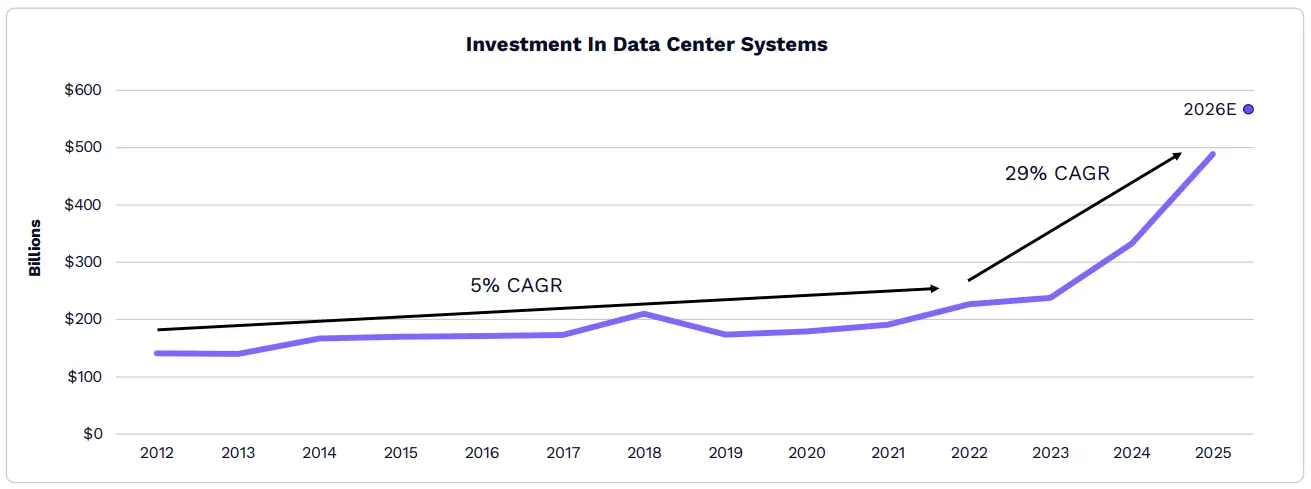 ตั้งแต่ “ช่วงเวลา ChatGPT” ระบบศูนย์ข้อมูลเติบโตเร็วขึ้นจาก 5% เป็น 29% อัตราการเติบโตต่อปียังคงเพิ่มขึ้น