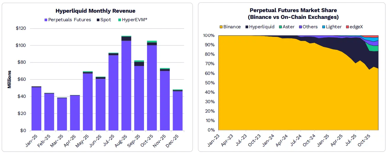 ภายใต้การนำของ Hyperliquid สินค้าอนุพันธ์ใน DeFi กำลังแย่งชิงส่วนแบ่งตลาดสัญญาอนุพันธ์แบบถาวรจาก Binance