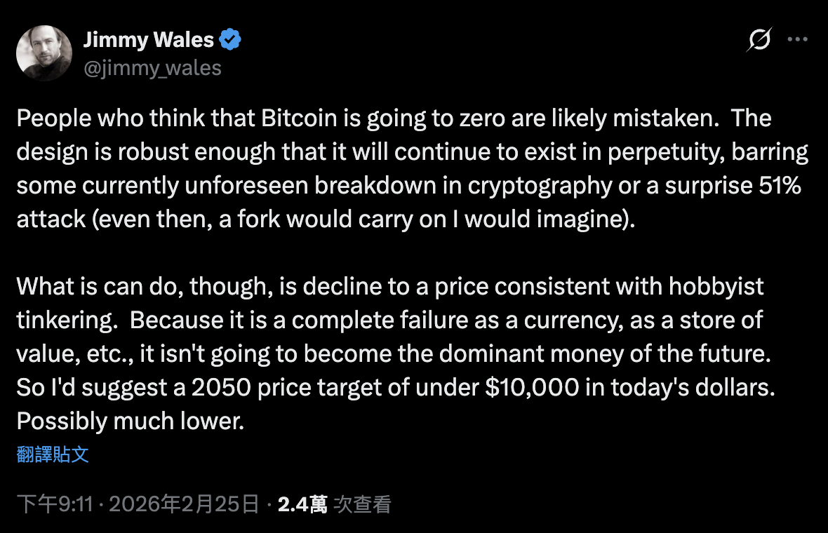 จิมมี่ เวลส์ กล่าวว่า มุมมองที่ว่าบิทคอยน์จะกลายเป็นศูนย์อาจไม่ถูกต้อง เขากล่าวว่า:
