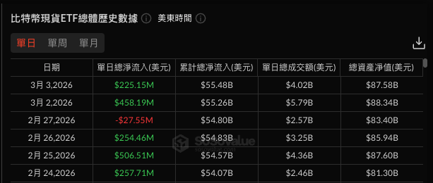 ในเวลาเดียวกัน นักลงทุนสถาบันเริ่มกลับเข้ามาอีกครั้ง ข้อมูลจาก SoSoValue ระบุว่า ตั้งแต่วันที่ 2 ถึง 3 มีนาคม กระแสเงินไหลเข้า ETF บิทคอยน์ในสหรัฐฯ รวมสองวันเกิน 680 ล้านดอลลาร์สหรัฐฯ