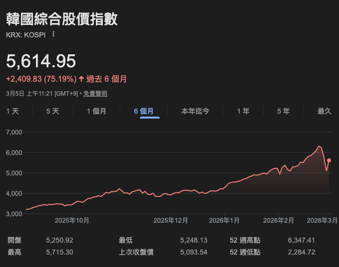 ที่มา: Google ดัชนี Kospi ในช่วง 6 เดือนที่ผ่านมา