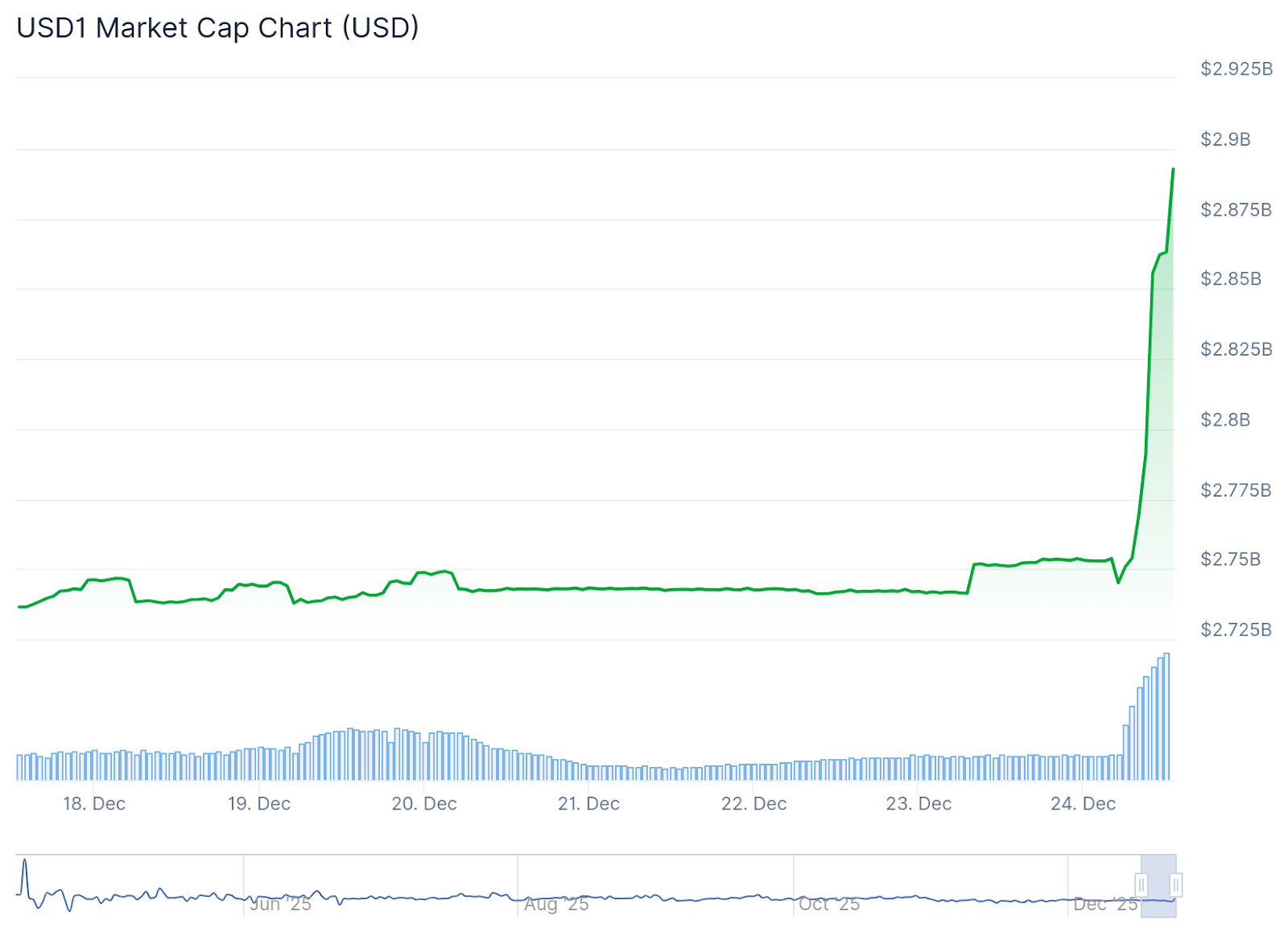 _USD1 market capitalization, one-week chart. Source: _CoinGecko.com