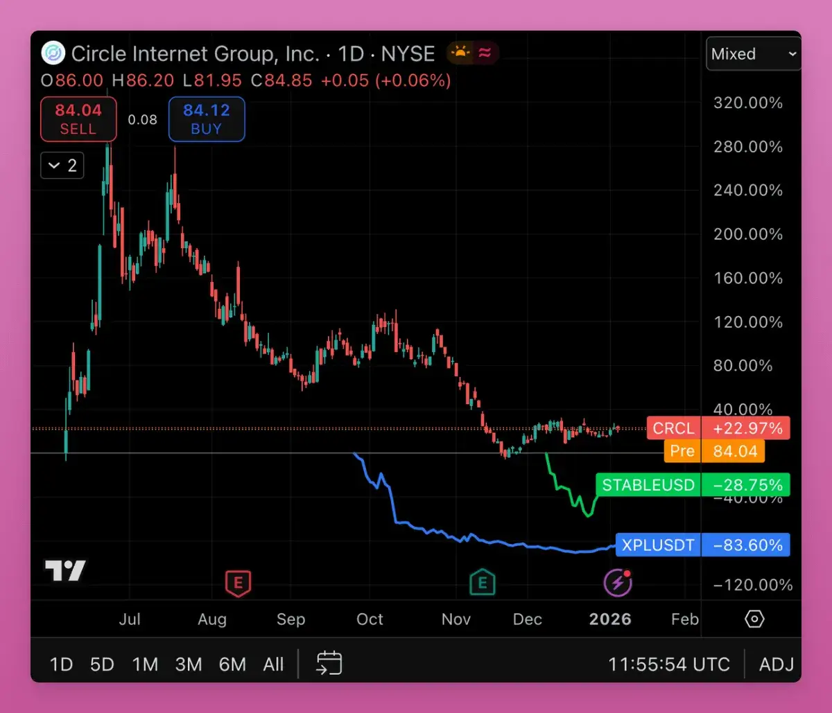 In 2025, the narrative shifted from “trading” to “payment infrastructure.” However, the trading stablecoin narrative is not easy: Circle’s IPO experienced a surge and then retraced all gains, and other proxy assets also underperformed.