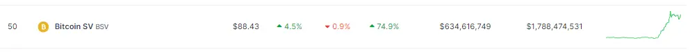 BSV price action in the last week. Source: Coingecko