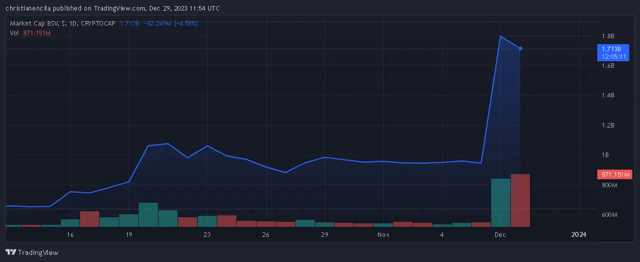 The market’s widespread excitement around the potential approval of a spot Bitcoin exchange-traded fund (ETF) in the US is one factor contributing to the rising value of BSV. As a result, throughout the last 30 days, the value of the Bitcoin fork has increased by nearly 80%.