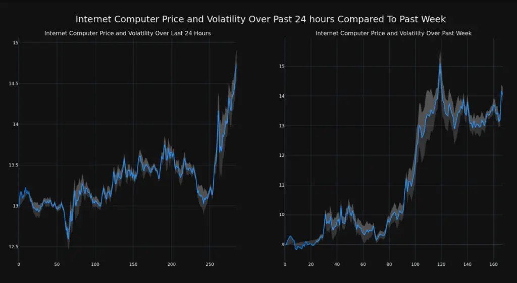 In the past day, the value of Internet Computer (ICP) has increased by 20% to $15.76. ICP has grown significantly over the last week, showing an astounding increase of more than 60% from its starting value of $8.98 to its current rate.