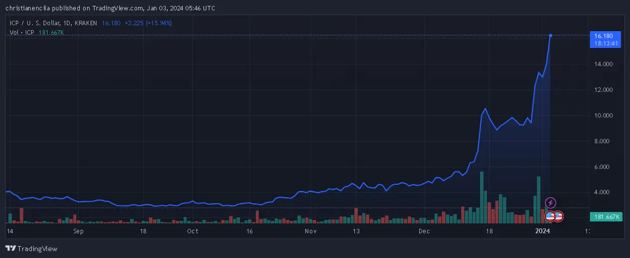 ICPUSD currently trading at $16.273 on the daily chart: TradingView.com