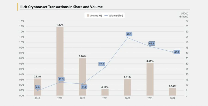Звіт також пояснює використання Біткойну в незаконній діяльності: дані показують, що частка, що використовується для незаконних цілей, досягла піку в 2019 році, абсолютна кількість досягла рекорду в 2022 році, а нині обидва показники знижуються.