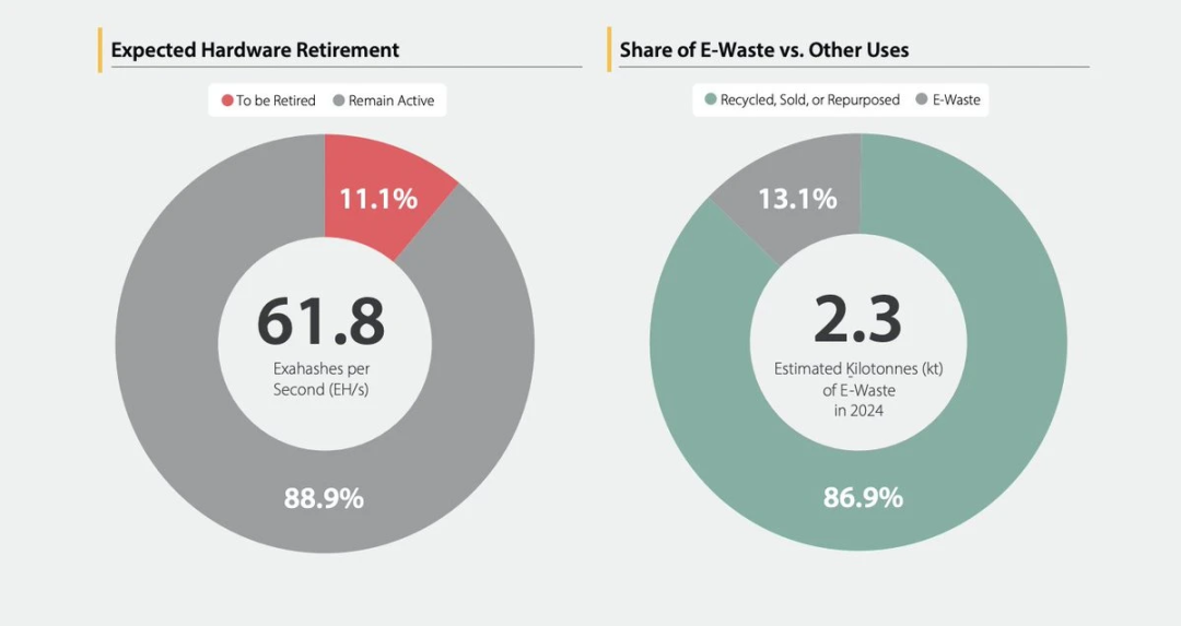 Багато людей хвилюються, що швидке оновлення обладнання для видобутку Біткойну може призвести до великої кількості електронного сміття? Цей звіт також дав відповідь на це питання: