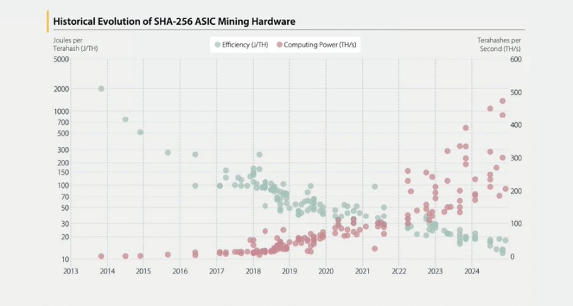 Від ранніх CPU/GPU до спеціалізованих чіпів ASIC, кожна ітерація приносить підвищення обчислювальної потужності на одиницю споживаної енергії. Як колись коментували Інтернет «занадто енерговитратним», не враховуючи закон Мура, так і тепер чимало людей ігнорують революцію енергоефективності, яку принесла еволюція майнінгових машин.