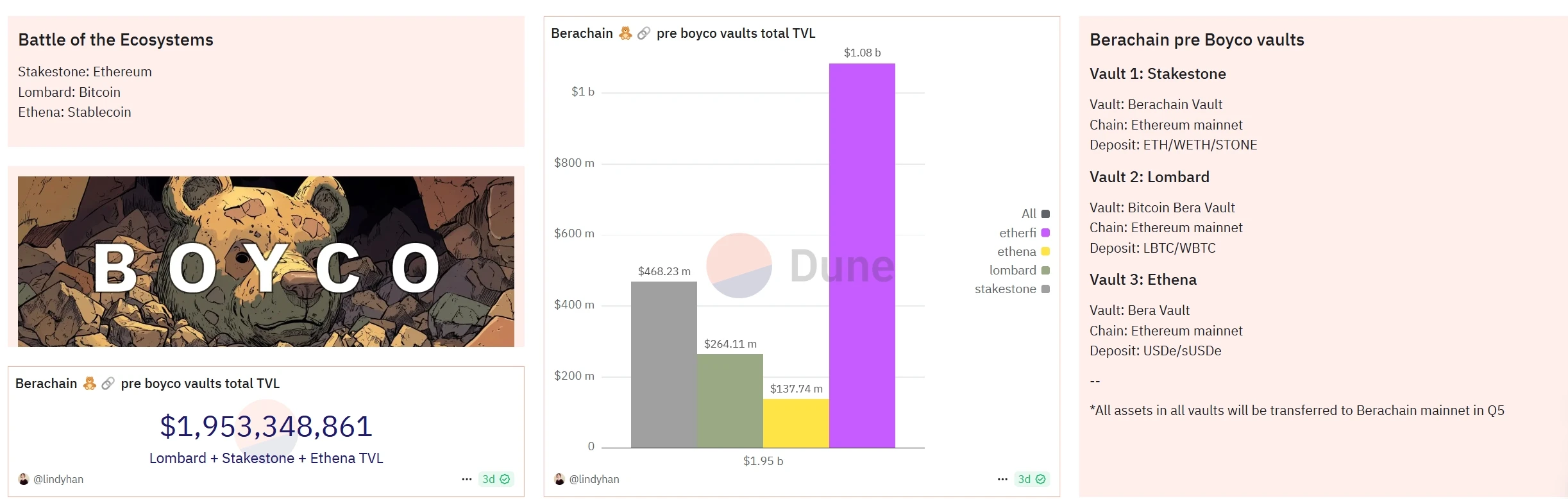 Tham gia hoạt động tiền tệ trước của Boyco, Berachain đã khóa 31 tỷ đô la tài sản, bao gồm ETH, BTC và tiền tệ ổn định. Quy tắc airdrop: