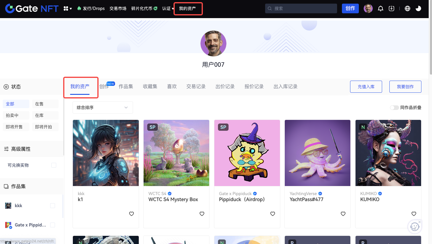 鑄造完成後,您可以進入 我的資產 頁面,查看您 創作的 NFT