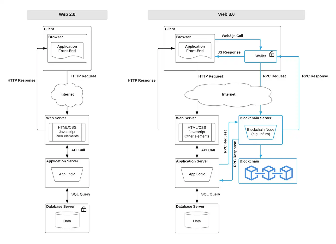 Web2 和 Web3 融合的技術架構, 展示 Cloudflare、Coinbase、以太坊如何分工協同