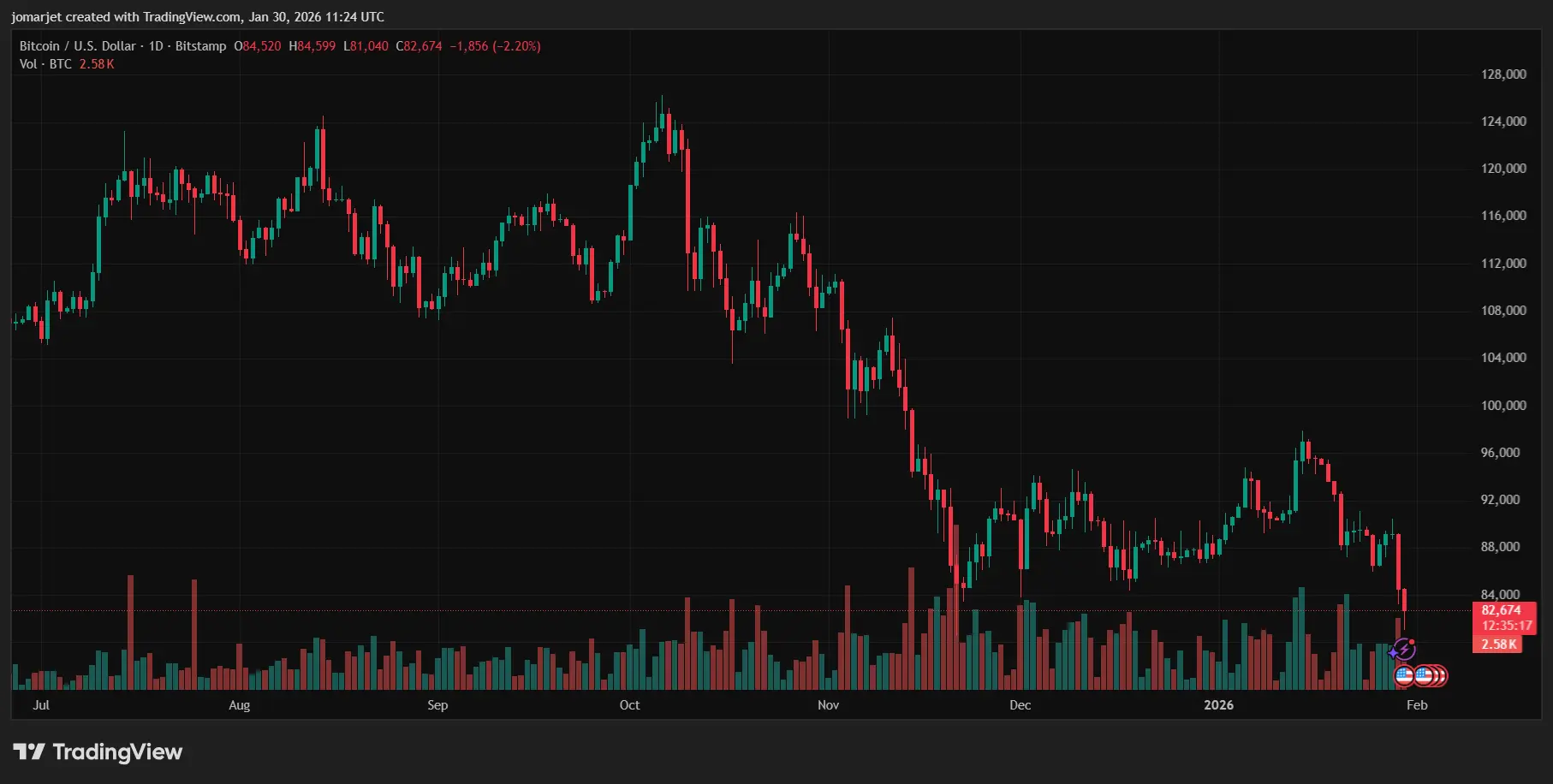 比特幣目前交易價格為82,674美元。圖表:TradingView